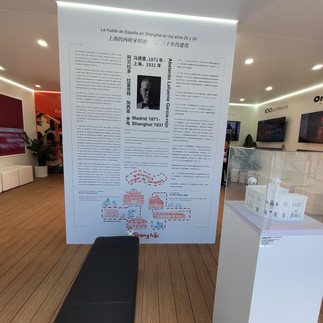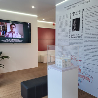 Finally, another area was dedicated to a special exhibit about the life and works of Abelardo Lafuente which has been an honor to prepare and organize being all in Spanish and Chinese languages. The space was divided into three walls: one for the 2021 Official Lafuente Documentary (available HERE on the YouTube Channel of Abelardo Lafuente) together with a QR code to our WeChat account. The second wall was designed with his portrait and professional career together with his building sketches which will be used this year as Cervantes Shanghai merchandise. The third wall shows the most relevant "still standing works" in the city.